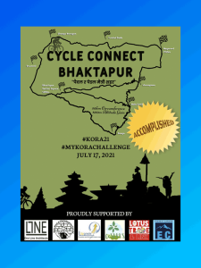 - Our First Major Event – #kora21 Around Bhaktapur- Organised independently by Cycle Connect Bhaktapur as per guidelines of #mykorachallenge organisers || Bhaktapur Durbarsquare- Duwakot- Changunarayan- Trishul Dada- Telkot- Nagarkot- Kalamasi- Lhasapako- Jitpur- Bageswori- Taumadhi