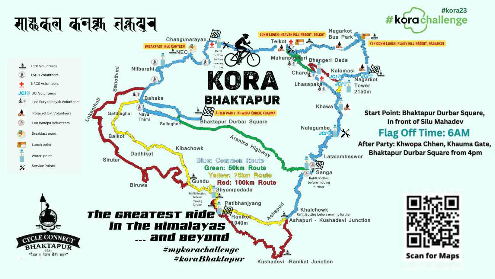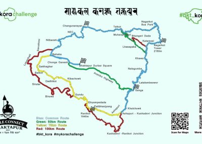 Cycle Connect Bhaktapur started independently organising Kora Bhaktapur in 2021 with 50 participants covering 50km distance in northern and eastern hills of Bhaktapur. In the second edition, Kora Bhaktapur 2022, almost 400 participants took part in the event in three different routes of 50, 75 and 100km encircling Bhaktapur. The ride in Kora Bhaktapur 2023 broyght together over 600 participants along all routes. This year we are also organising kora bhaktapur with the main aim to promote Bhaktapur as a national and international cycling destination. We have developed 50km circuit – Southern foothills of Bhaktapur, 75km circuit – Northern and Eastern Ridges of Bhaktapur and 100km circuit- our flagship century ride route encompassing the whole of Bhaktapur named as Cycle Connect Bhaktapur circuit.